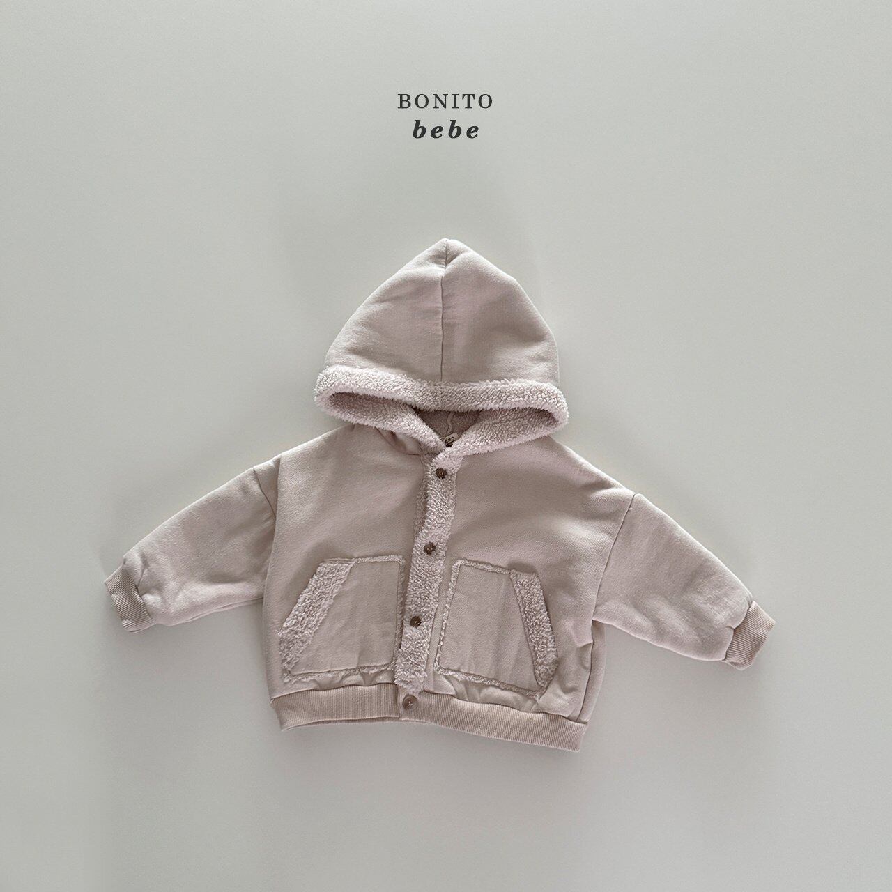 【商品名】ボアフードカーディガンbebe
