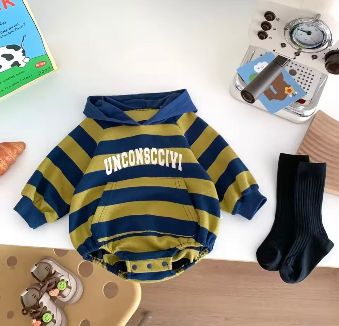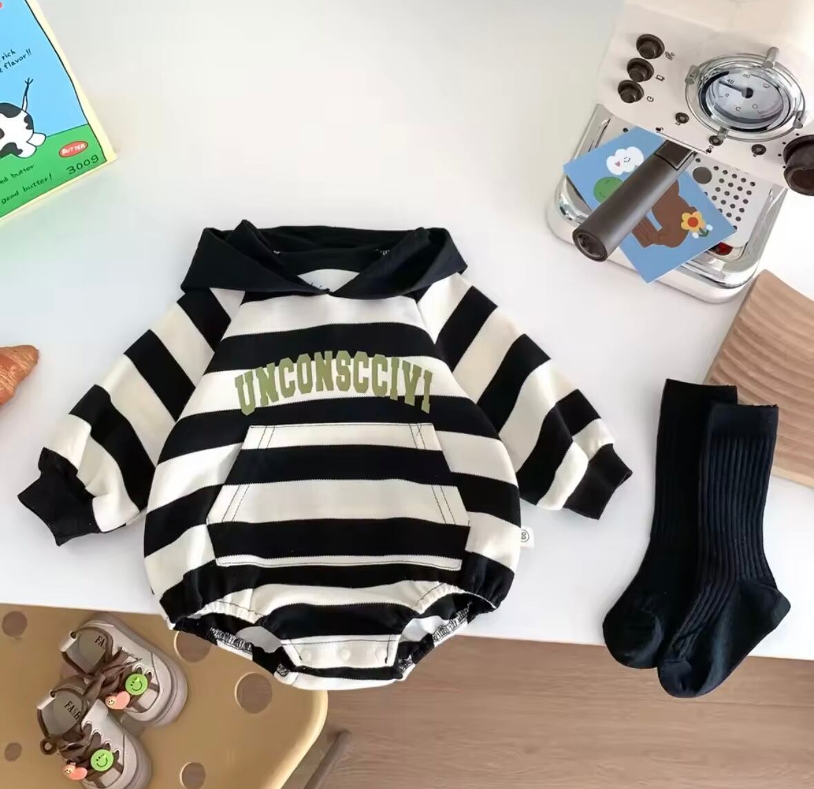 可愛いボーダーロンパースを入荷いたしました。
